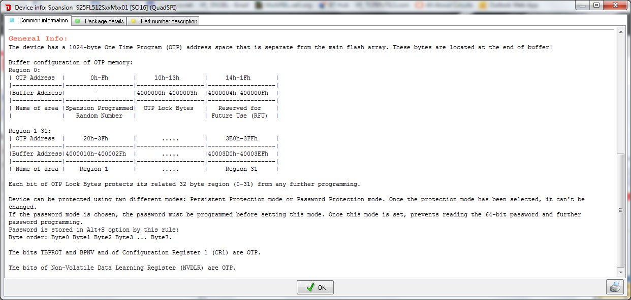 I could not find any mention of the Spansion part name "S25F512sagmfi01", perhaps it is the S25FL512S device? If yes, then the location of the special options are described in our software: