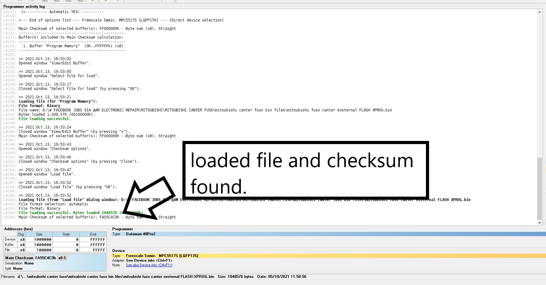 the picture below is me loading the file i wish to be able too perform a checksum on. currently the dataman doesn't have the chip loaded , so please ignore the fact a MPC chip has been selected.