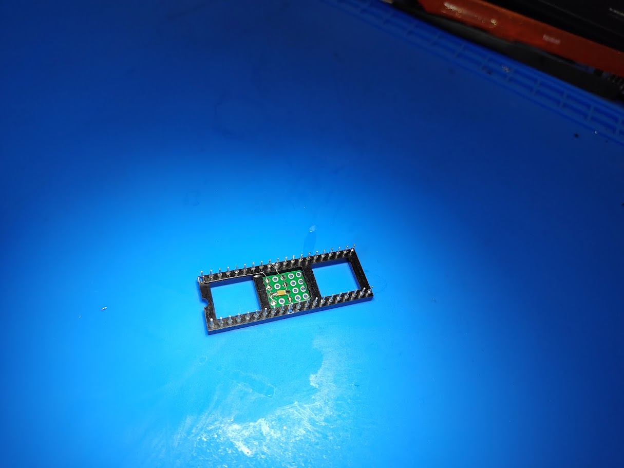 We provide a programming adapter DIL40/DIL40 ZIF AddCap (70-0802) with special soldering pads for better placing of some capacitors. The programming adapter package (70-0802) also contains 5 pieces of 100nF and 5 pieces of 100pF ceramic capacitors.
