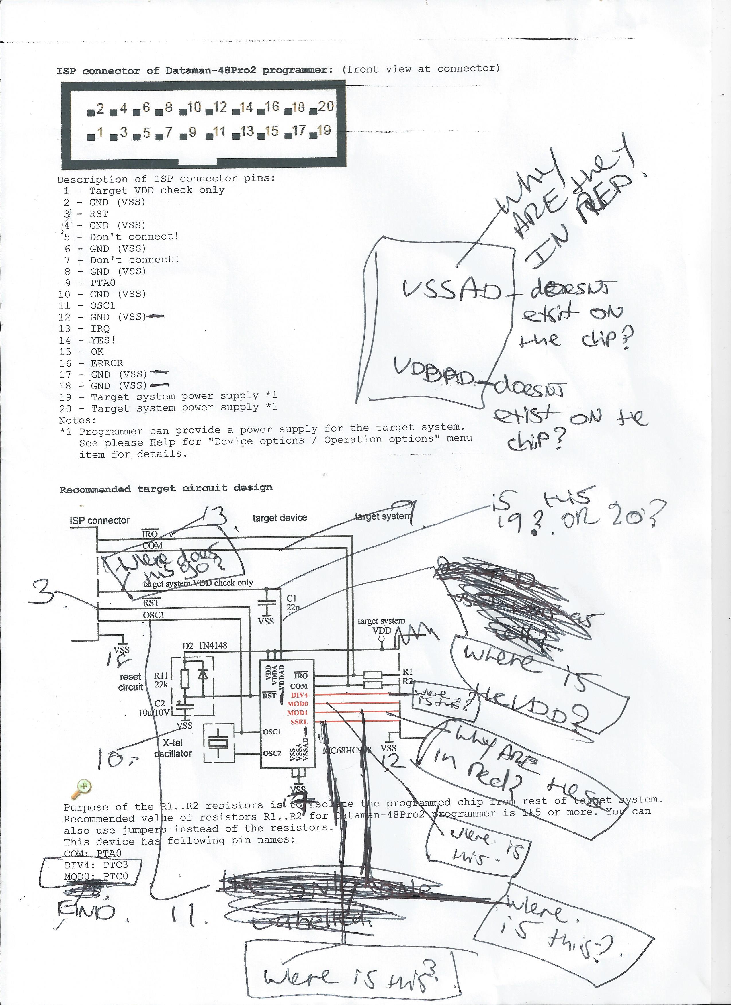 i can see what is what now , but it took me a quite some time to read through the jargon then compare the manufacturer pin data, with the Dataman's diagram /pin data , then i compare it to the 3rd parties i had to ultimately use , which is clear & to the point. and doesn't mess about , yes it doesn't use all the pin requirements that the Dataman's ISP illustration pin assignments have set out but it manages to get where i want to be, i am still very very impressed with the Dataman device i have its fast and again the coverage is wow BIG , but the ISP is such a let down. when i discovered it can flywire in into a target device i was very happy. but the illustrations are just so poor. putting in extra words for no reason. , I'm sure you can apricate the frustration, but also the constructive criticism.